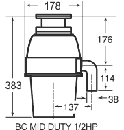 Bone Crusher® MID DUTY 1/2 HP BC® 700 provedení 230V, kuchyňský drtič odpadků Anaheim USA.