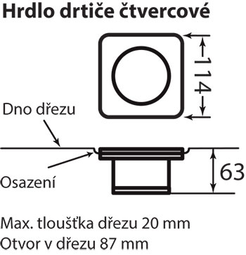 Max. tloušťka dřezu 20 mm