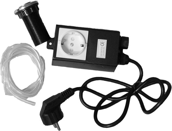 - krabice se spínačem má kabel délky 100 cm se zástrčkou do el. síťe, na krabici je EU-zásuvka pro připojení drtiče odpadu.